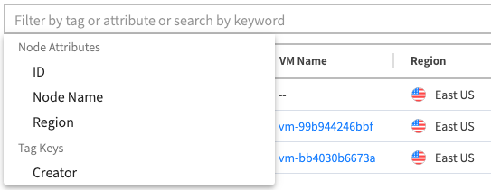 If you have a number of stateful nodes, you can use the filter above the list to find one or multiple nodes. Enter a tag, a node attribute, a keyword or simply a string of text into the filter box and type enter.
